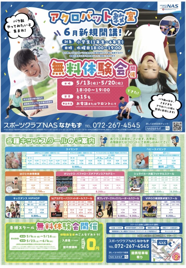 アクロバット教室の新規開講が決定しました!!